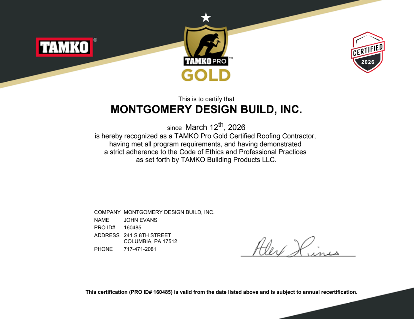 TAMKOPro Gold Certified
