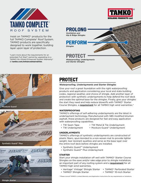 - Protect - Waterproofing, Underlayment, and starter shingles
